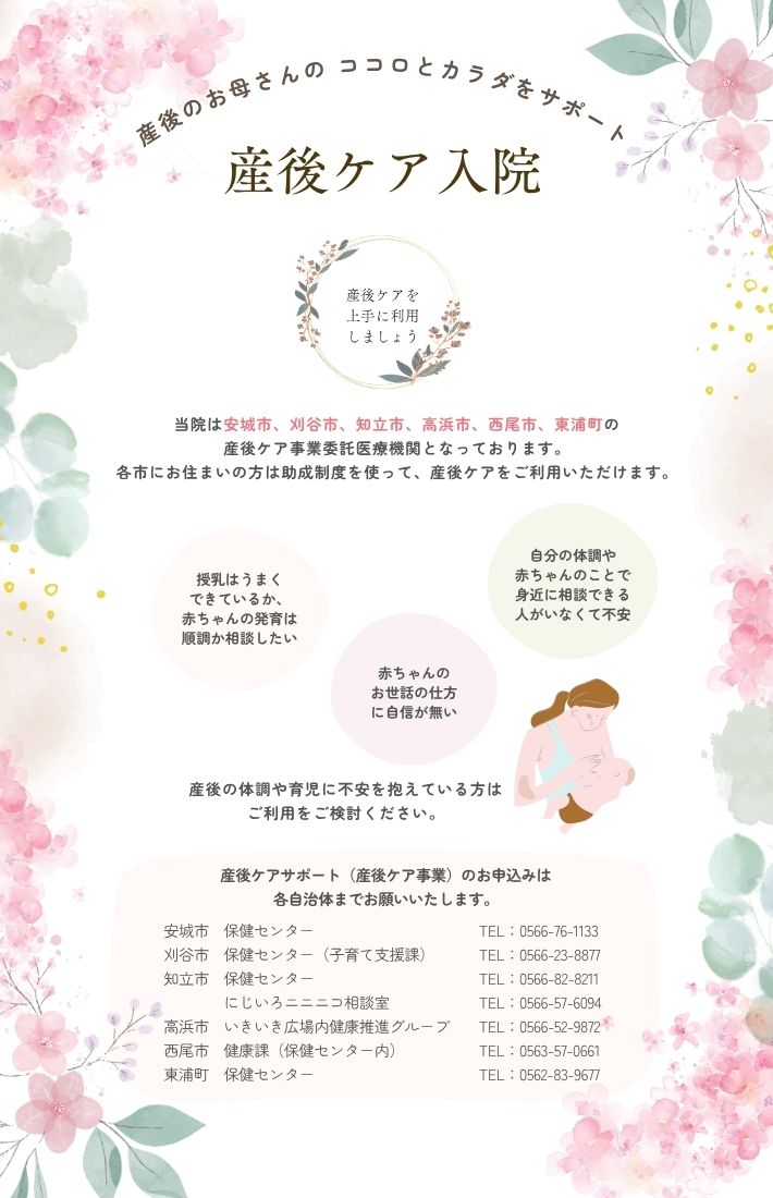 ・最大利用日数は7日までです。 ・病室の空き状況や母子の健康状態によっては、ご希望の日に利用できない場合があります。 ・母子の状況を伺うために、ご利用の前にお電話をさせていただくことがあります。
