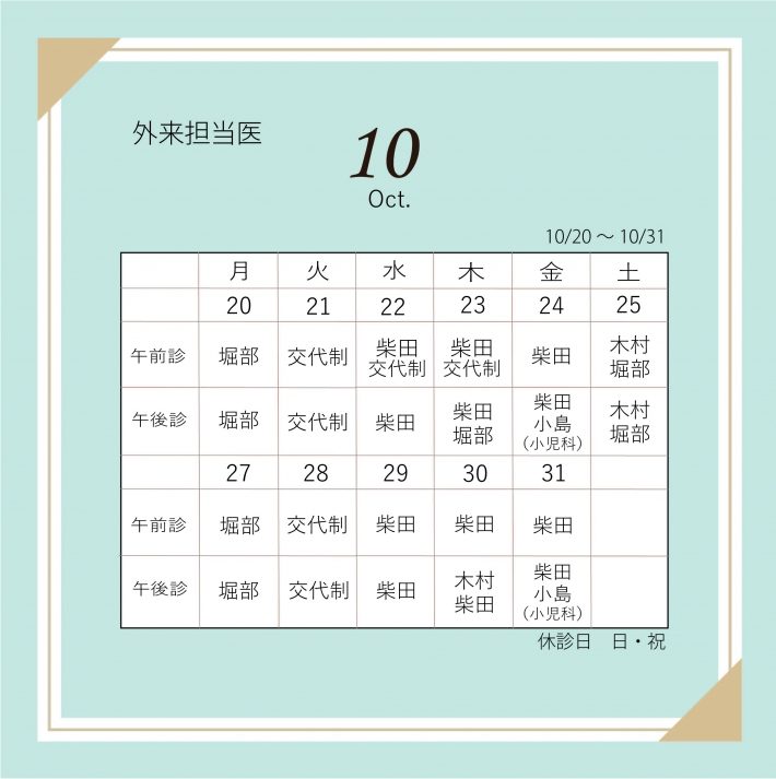 2025年10月20日~31日 外来診察Dr.のお知らせ