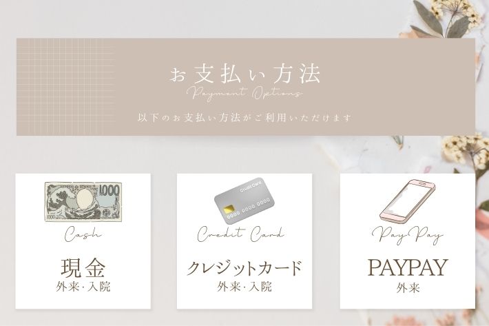 外来診療・分娩費用のお支払いにキャッシュレス決済がご利用いただけます。