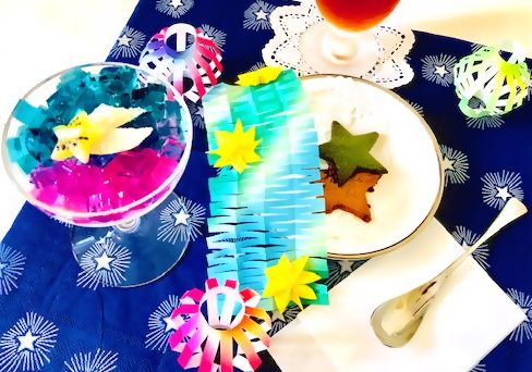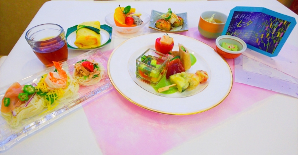 7月7日のおやつと夕食に、七夕をイメージした食事を提供しました。