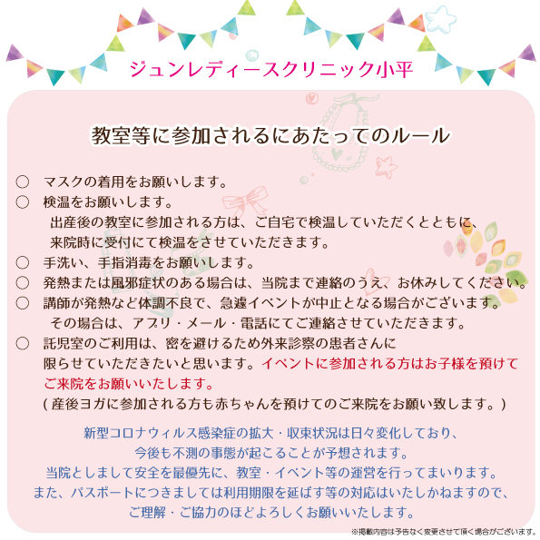 再開にあたり、安全に配慮しながら皆さんに楽しんでいただくために、「イベント・教室等に参加されるにあたって」をお守り頂きますようお願い致します。