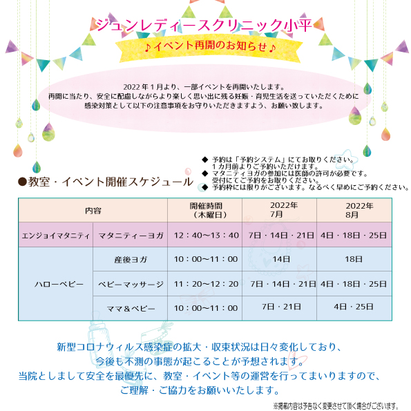 2022年1月末より、休止しておりました教室を順次再開させていただきます。
