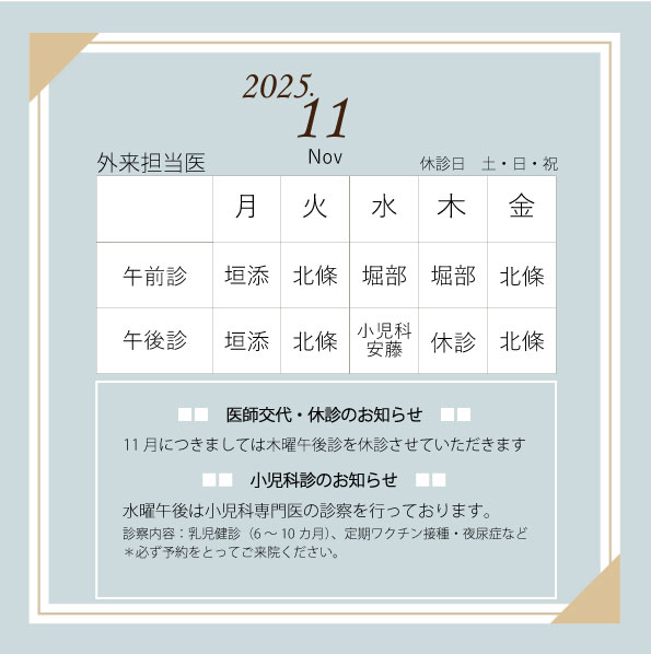 2025年11月 外来担当医のお知らせ