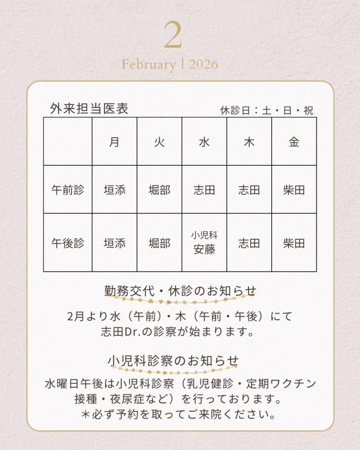 2026年2月より木曜の午後診も診察させていただきます。 是非、ご利用ください。