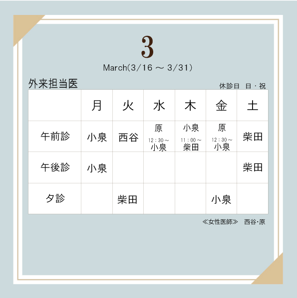 ■3/30(月)午前診:小泉Dr.(男性)