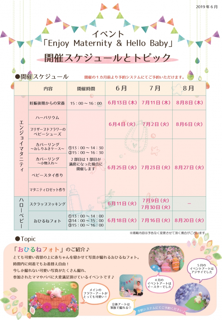 Enjoy Maternity & Hello Baby 6~8月スケジュール&トピック