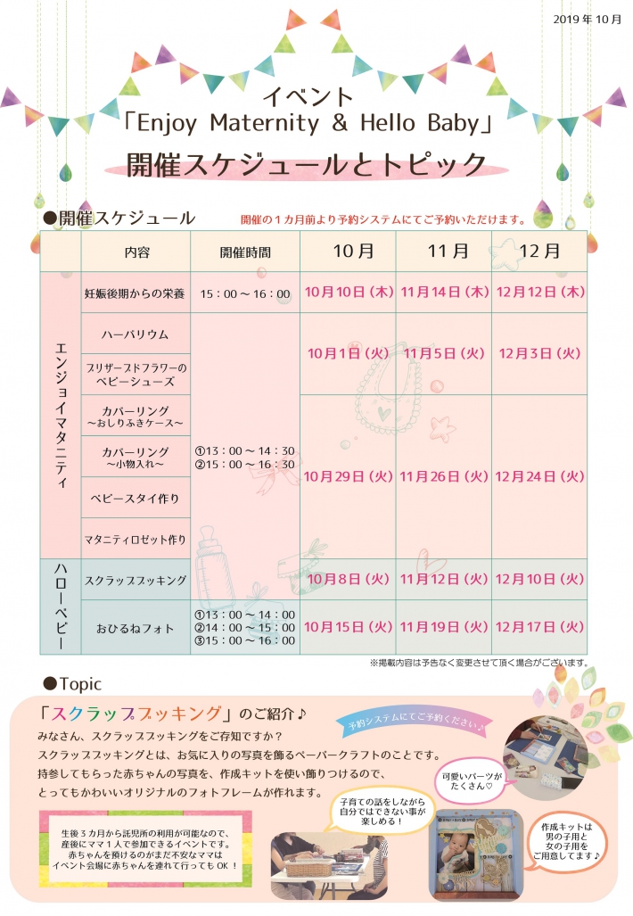 Enjoy Maternity & Hello Baby 10~12月スケジュール&トピック