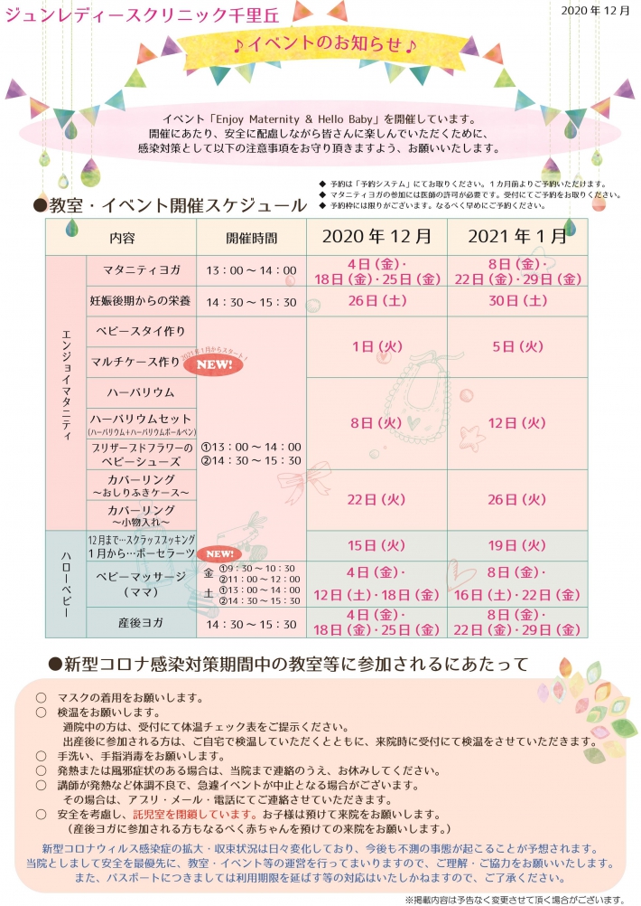 Enjoy Maternity & Hello Baby 12~1月スケジュール