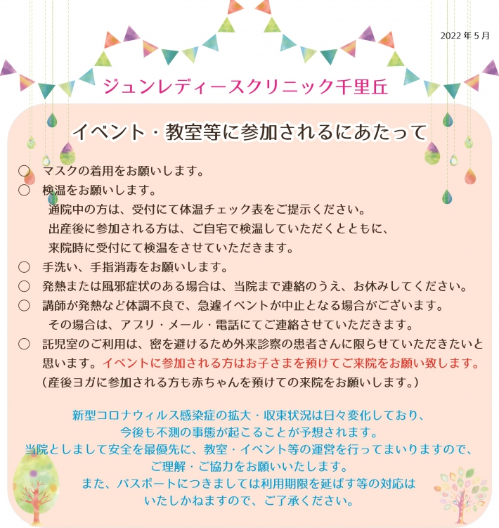 再開にあたり、安全に配慮しながら皆さんに楽しんでいただくために、「イベント・教室等に参加されるにあたって」をお守り頂きますようお願い致します。