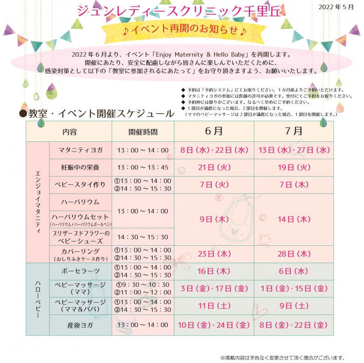 産前産後イベント再開のお知らせ