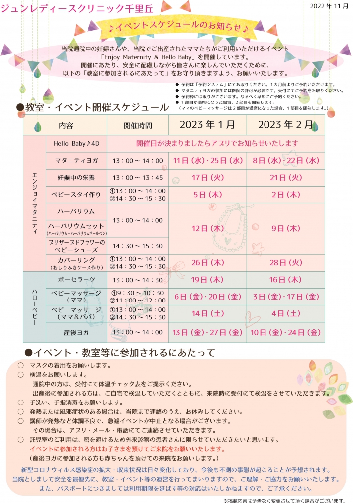 Enjoy Maternity & Hello Baby 2023年1~2月スケジュール