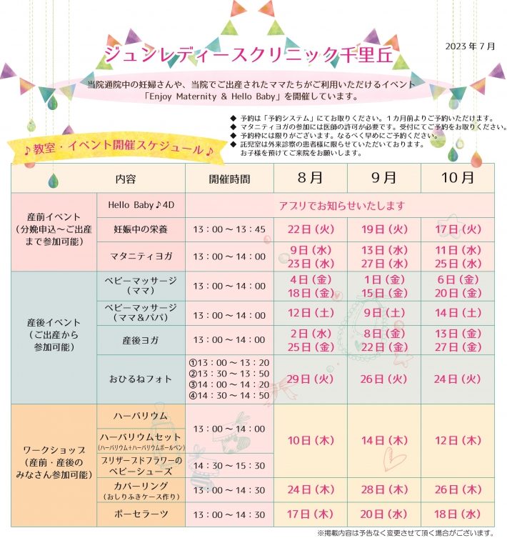Enjoy Maternity & Hello Baby 2023年8~10月スケジュール