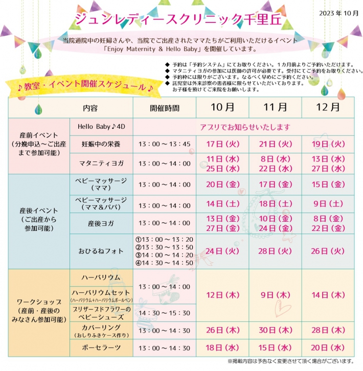 Enjoy Maternity & Hello Baby 2023年10~12月スケジュール