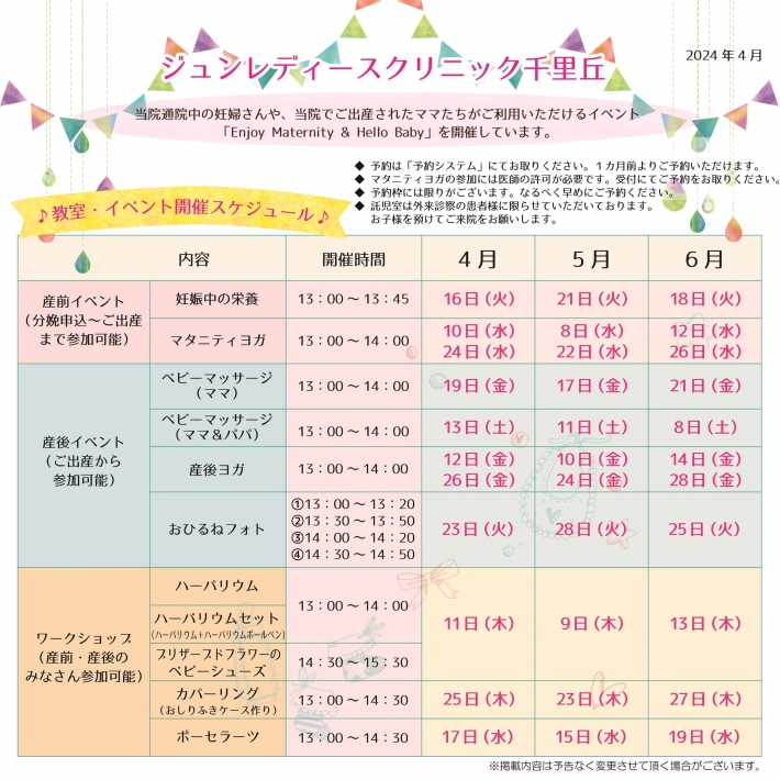 Enjoy Maternity & Hello Baby 2024年4月~6月スケジュール
