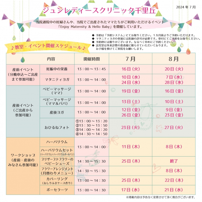 Enjoy Maternity & Hello Baby 2024年7月~8月スケジュール