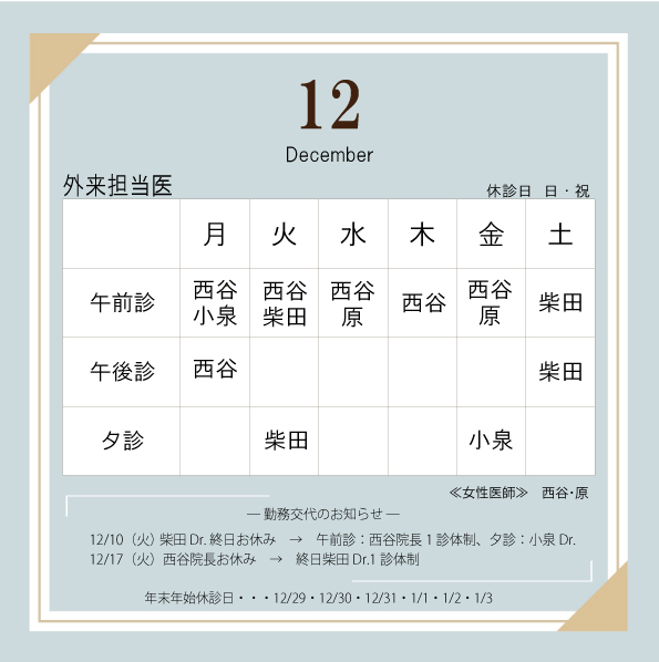 2024年12月外来診察のお知らせ