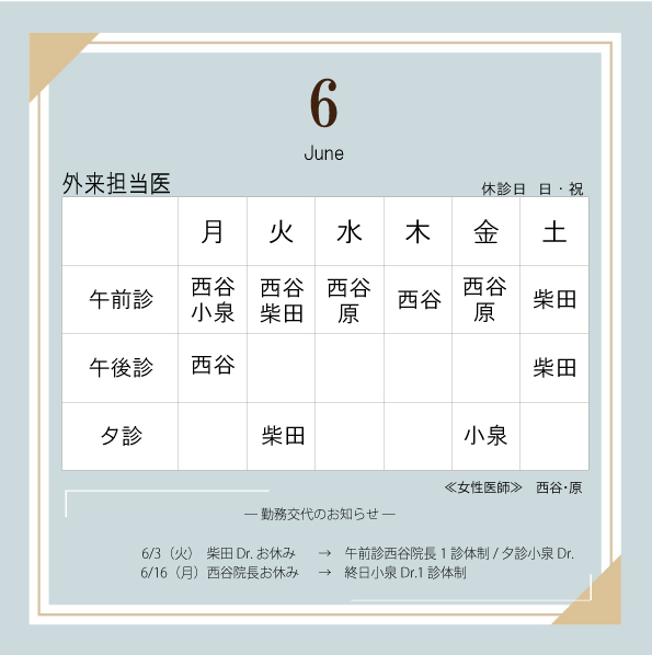 2025年6月外来診察のお知らせ