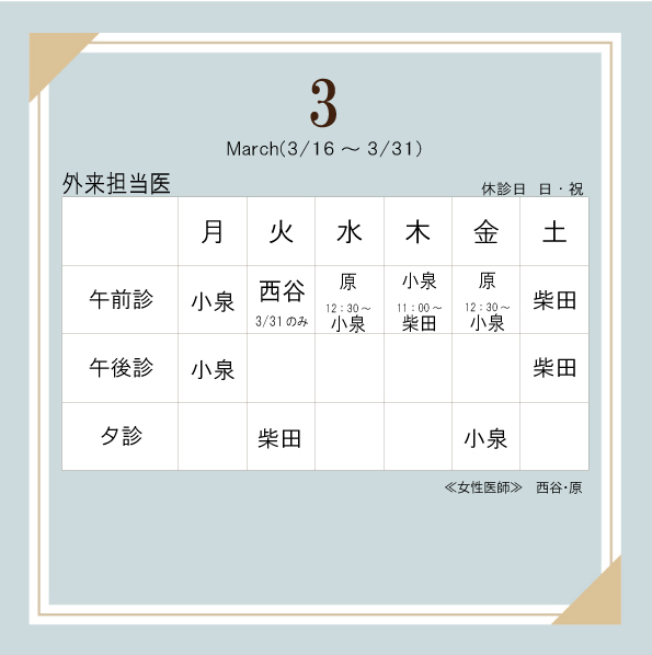 ■3/30(月)午前診:小泉Dr.(男性)