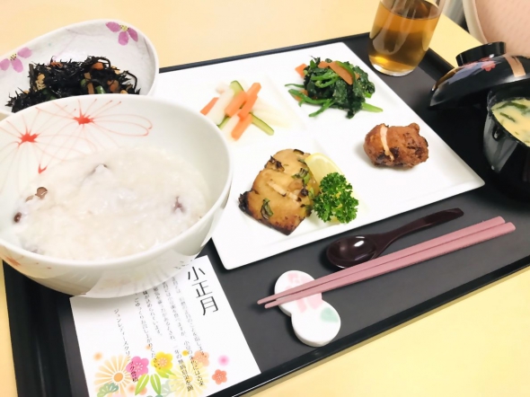1月15日 小正月を行いました。 小正月とは、旧暦の正月のことを指します。 小豆の朱色には昔から邪気を祓う力があるとされ、一年の家族の健康を願う 意味を込めて、小豆粥を食べます。