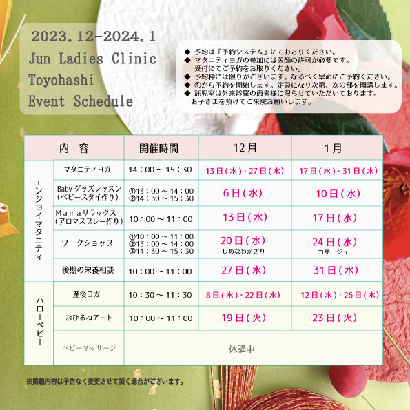 教室・イベント 12-1月スケジュール