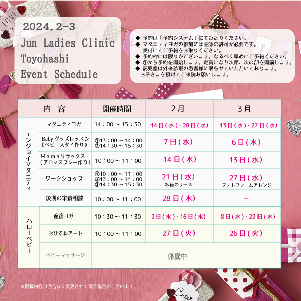 教室・イベント 2-3月スケジュール