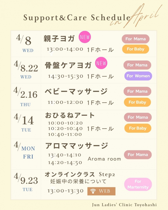 2026年4月 Support & Care スケジュール